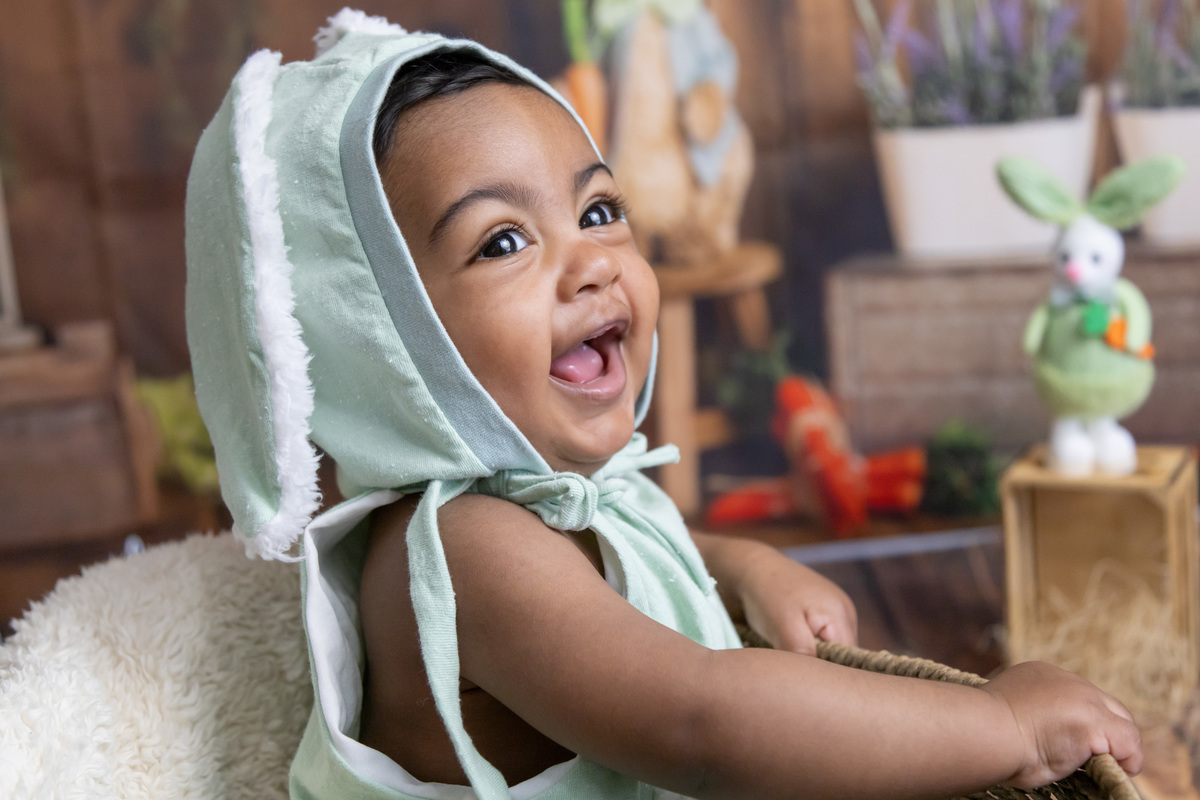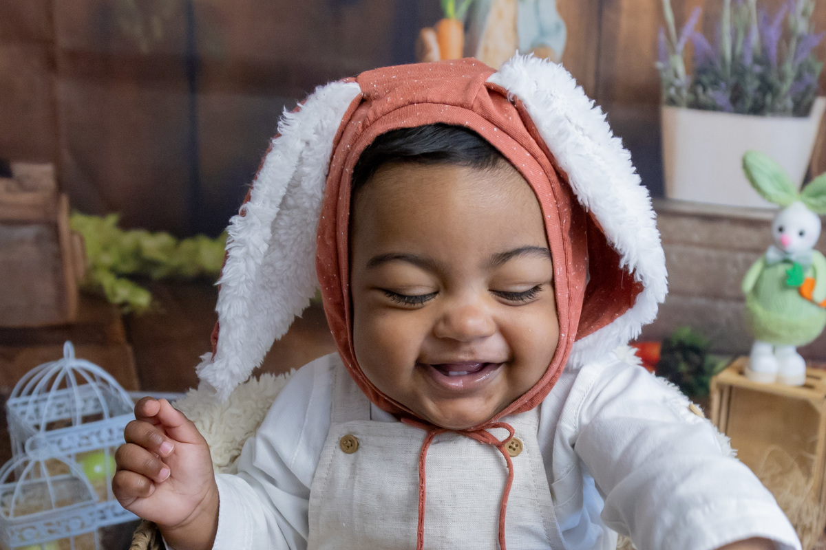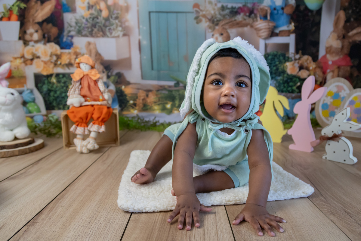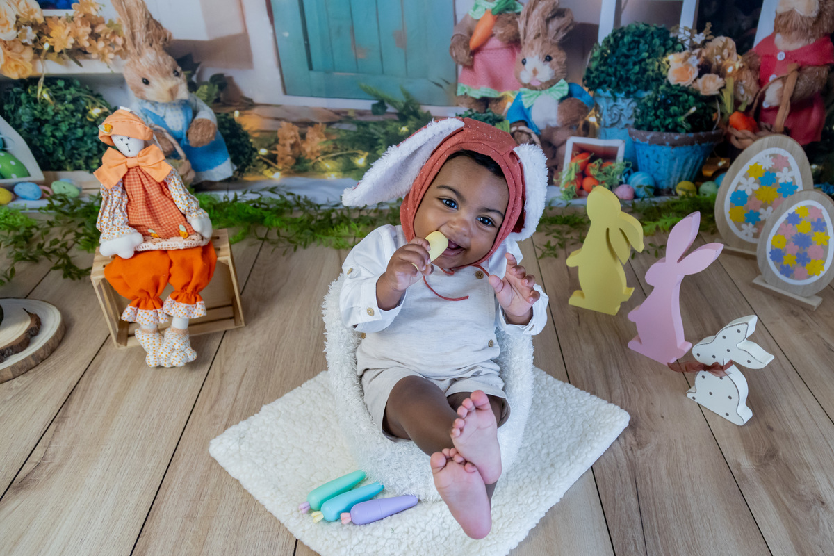 Este bebé lindo foi a estrela da nossa sessão de Páscoa! Com o seu olhar curioso, sorrisos bem abertos! e um jeitinho encantador, transformou o cenário num verdadeiro conto de primavera.