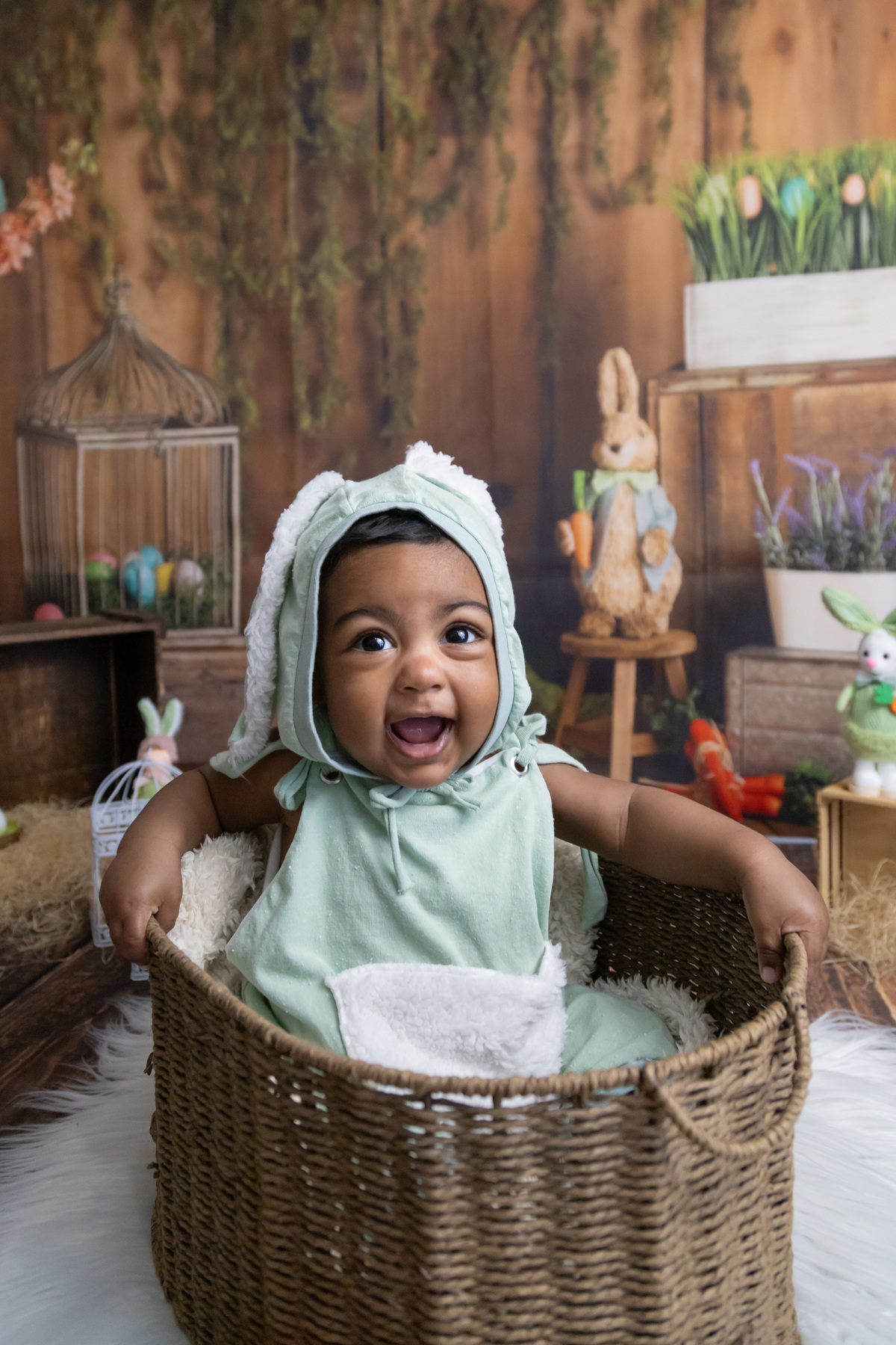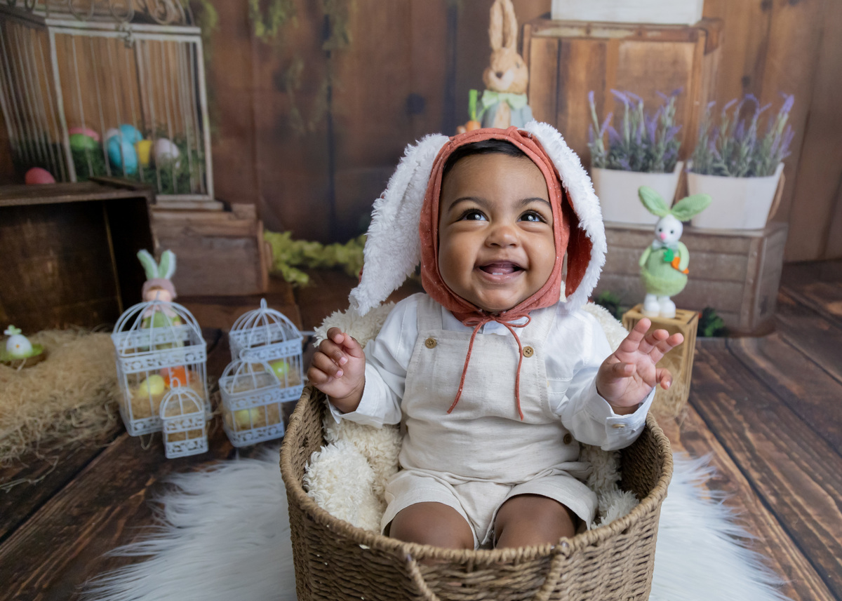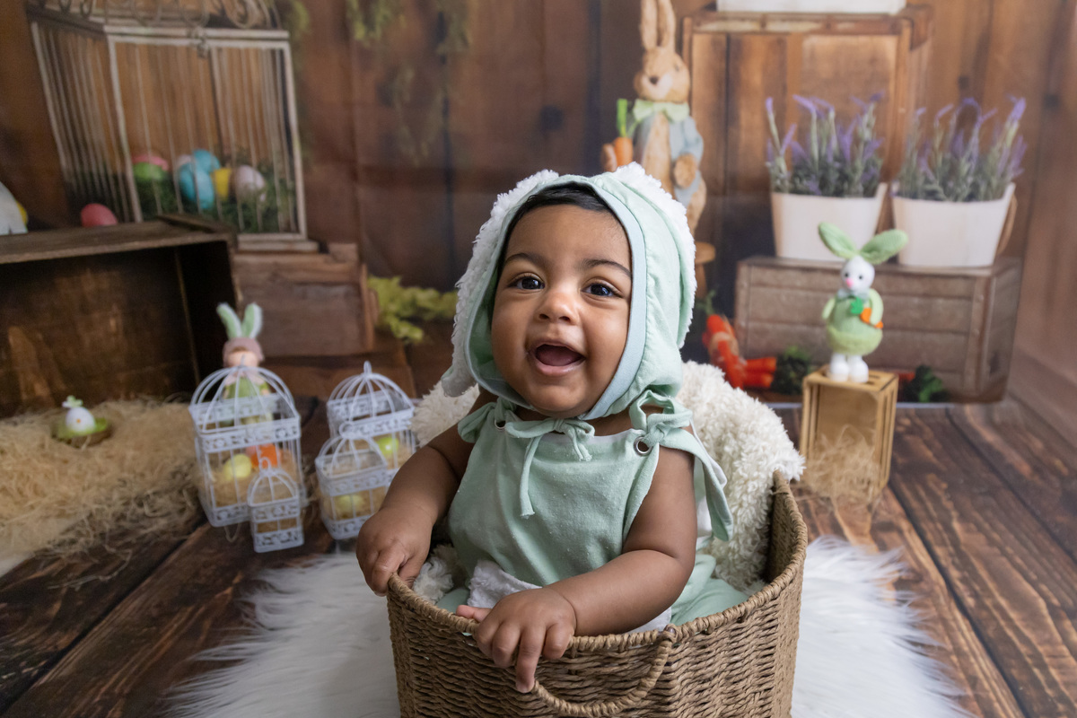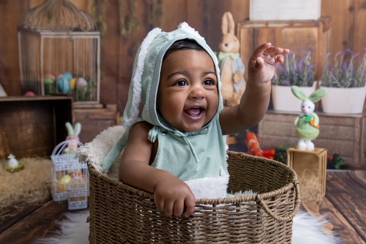 Este bebé lindo foi a estrela da nossa sessão de Páscoa! Com o seu olhar curioso, sorrisos bem abertos! e um jeitinho encantador, transformou o cenário num verdadeiro conto de primavera.